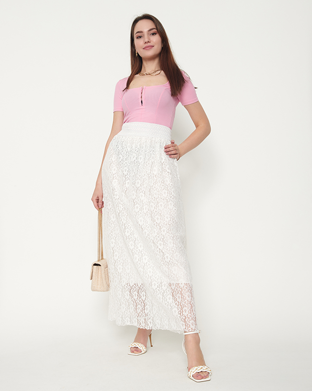 - Stylish, lightweight women's midi skirt made of pleasant lace material. Elastic rubber at the waist. Model with lining, available in various colors! NOTE: Measurement accuracy (+/-) 1 cm.