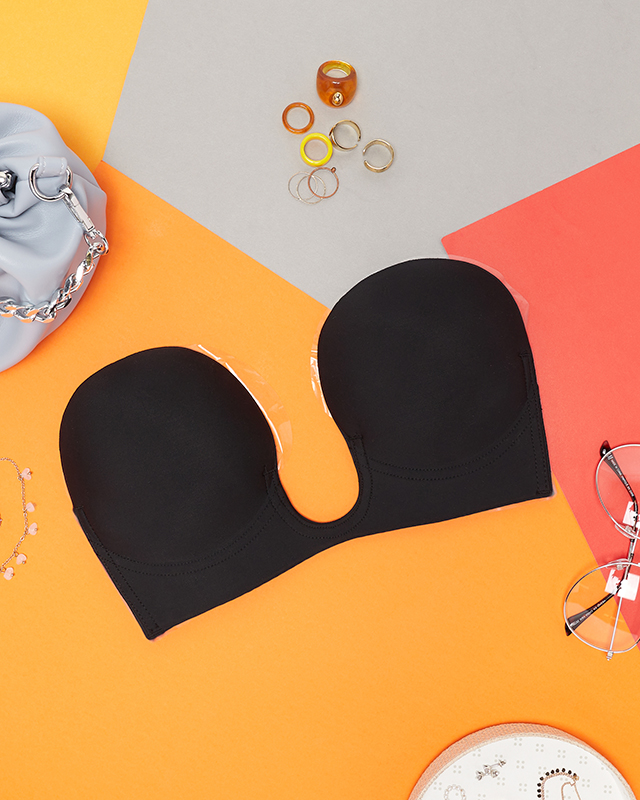 - A self-supporting women's bra, fixed with thin gel inner inserts on the cups and gel layers on colorless silicone wings on the sides. There are underwires in the stiffened cups. NOTE: Measurement accuracy (+/-) 1 cm.