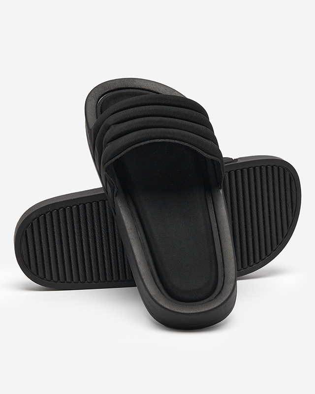 - Super stylish women's striped slippers, on a flat sole. The upper and the insole are made of fabric material, the sole is made of rubber. They will be a great decoration for everyday styling.