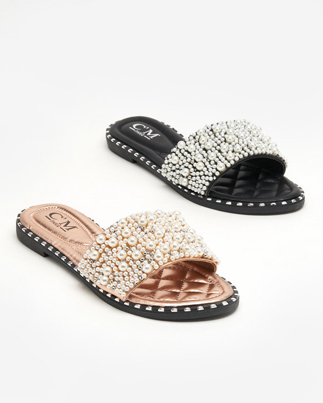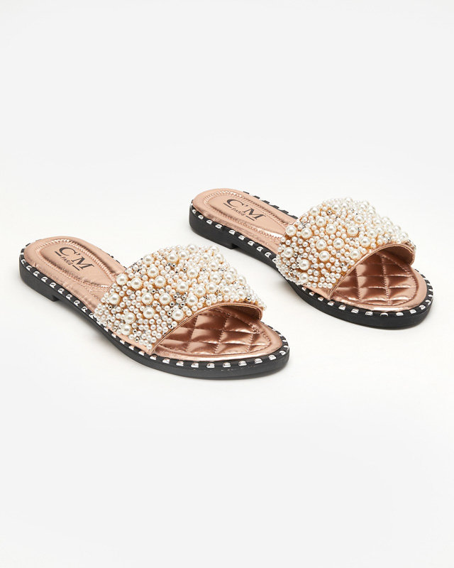 OUTLET Women's slippers with pearls in rose gold color Loppo - Footwear