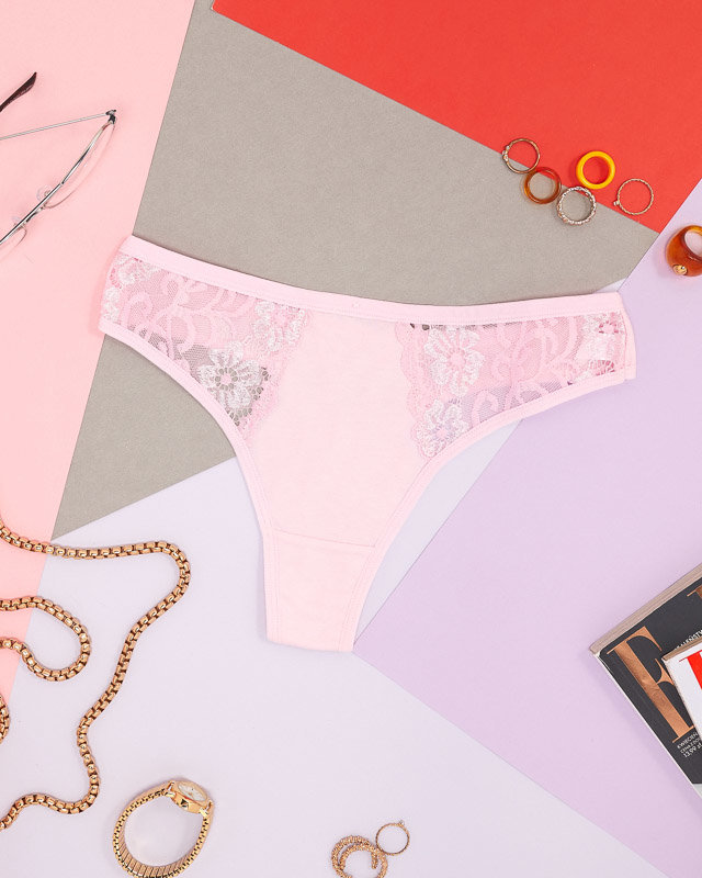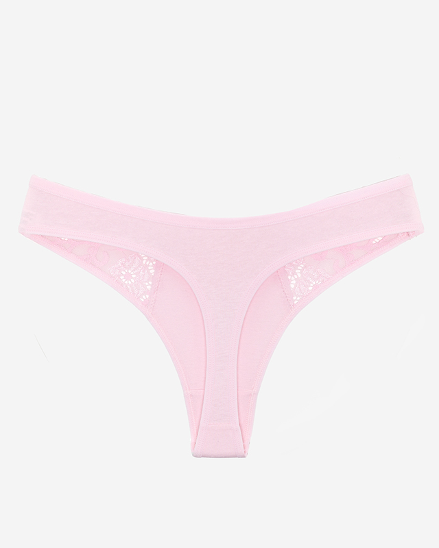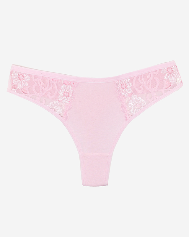 Pink cotton women's thongs with decorative lace - Underwear