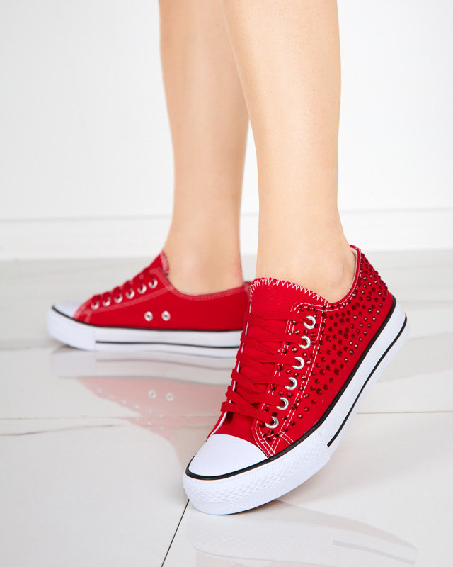 OUTLET Women's sneakers with colorful zircons in red Amanda - Footwear