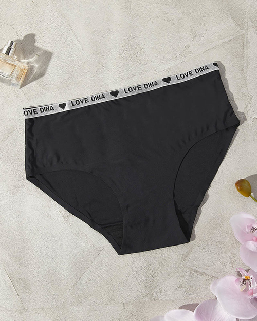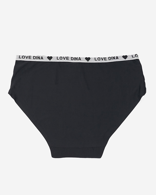 Black women's briefs with a decorative stripe with inscriptions - Underwear