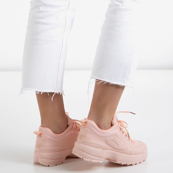 - The most fashionable women's sports shoes, daddy shoes / ugly shoes this season. The upper is made of ecological leather in a light pink color. NOTE: the model may have spots on the sole. Note: the product has dirt on the material.