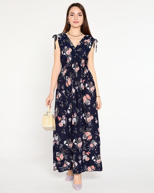 • Lovely women's maxi dress, made of soft and airy viscose fabric. The model with an envelope neckline, wide straps and a wide elastic waist, emphasizing the waist. NOTE: Measurement accuracy (+/-) 1 cm.