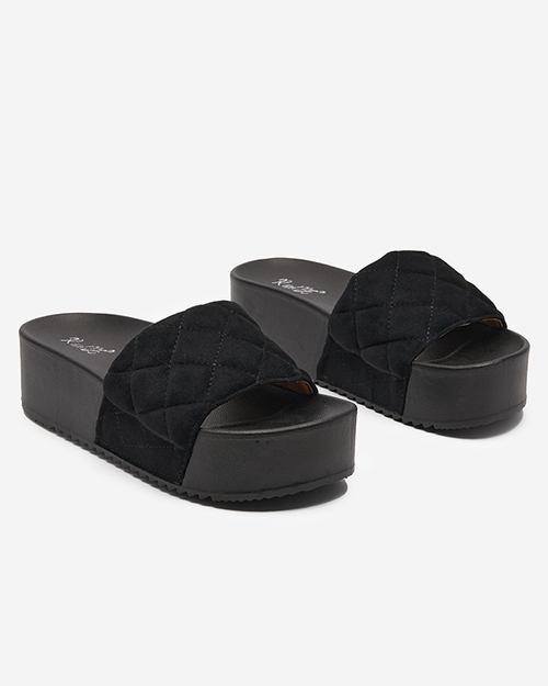 - Stylish women's quilted slippers in a casual style, on the platform. The strap is made of ecological chamois leather, the insert is made of rubber material. Note: the product has traces of glue on the material.
