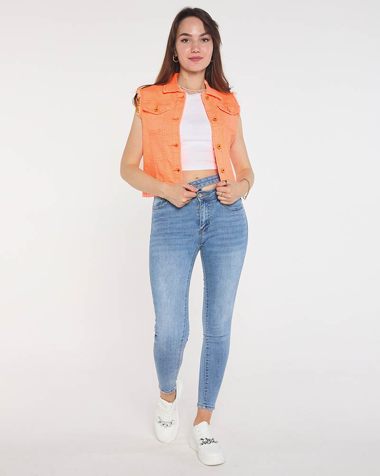 Orange denim vest for women - Clothing