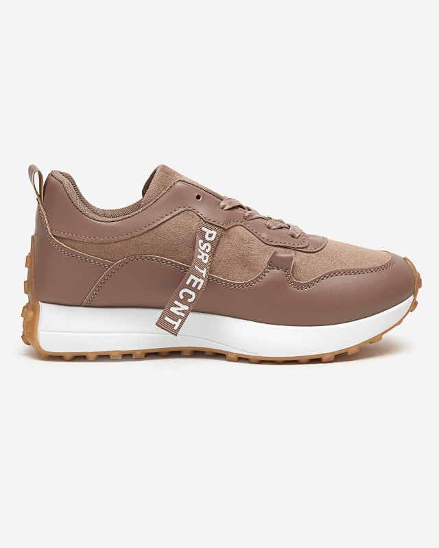 - Stylish women's sports shoes in a casual style. The upper is made of a combination of ecological leather and ecological chamois leather. The inside is lined with a cloth material. Lace-up model. Note: the product has scratches on the material.