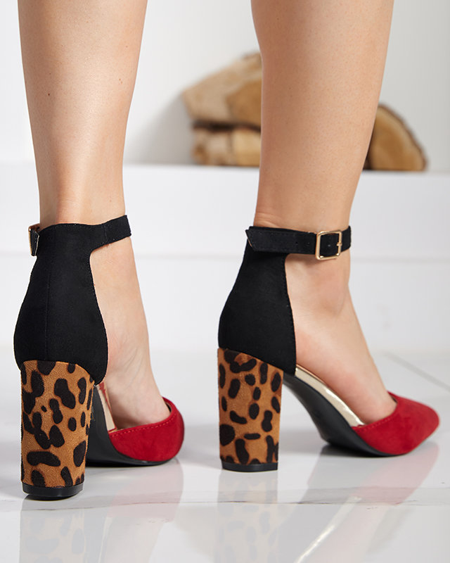 OUTLET Red sandals on a post with a fashionable Herino pattern - Footwear