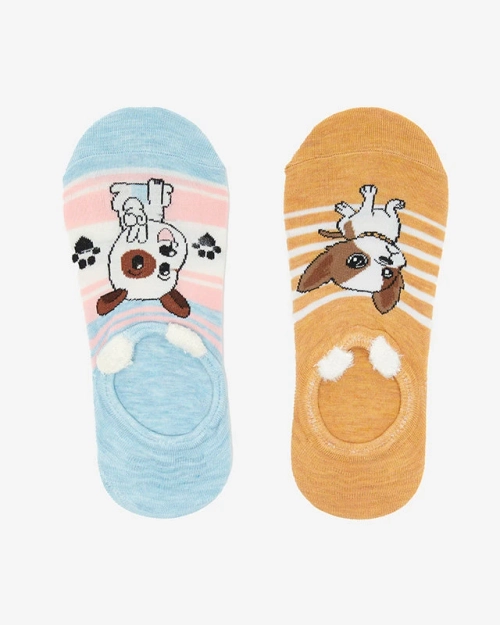 Blue and brown women's socks with animal print 2 / pack - Underwear