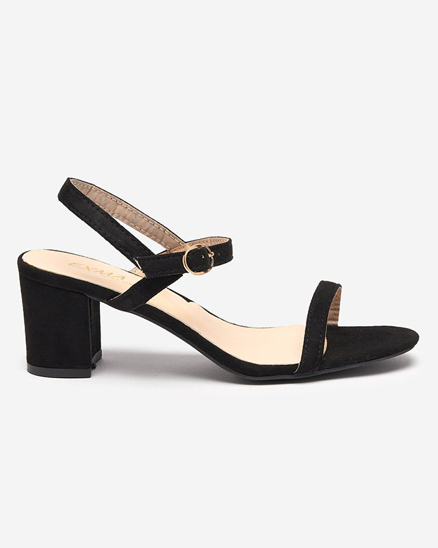 • Classic women's sandals on a stable post, made of ecological suede leather. The model is fastened with a buckle, has an eco leather insert inside. A great addition to your dresses and skirts!