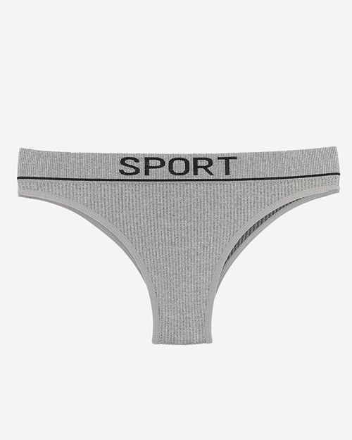 Gray women's ribbed panties with sporty inscriptions - Underwear
