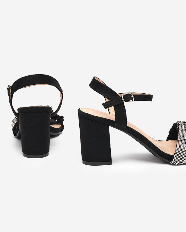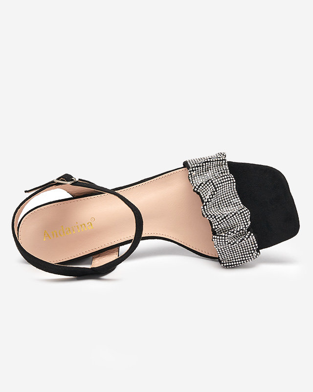 Black women's sandals on a post with cubic zirconias Trieste - Footwear