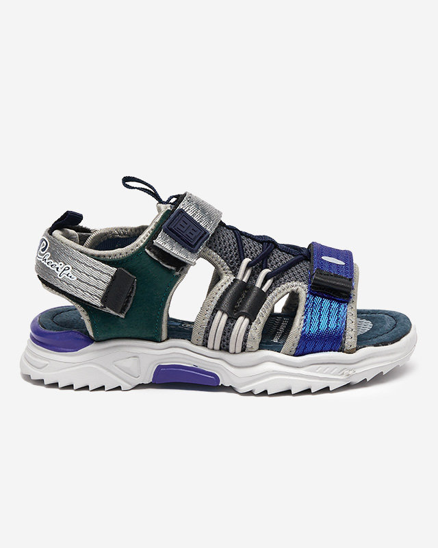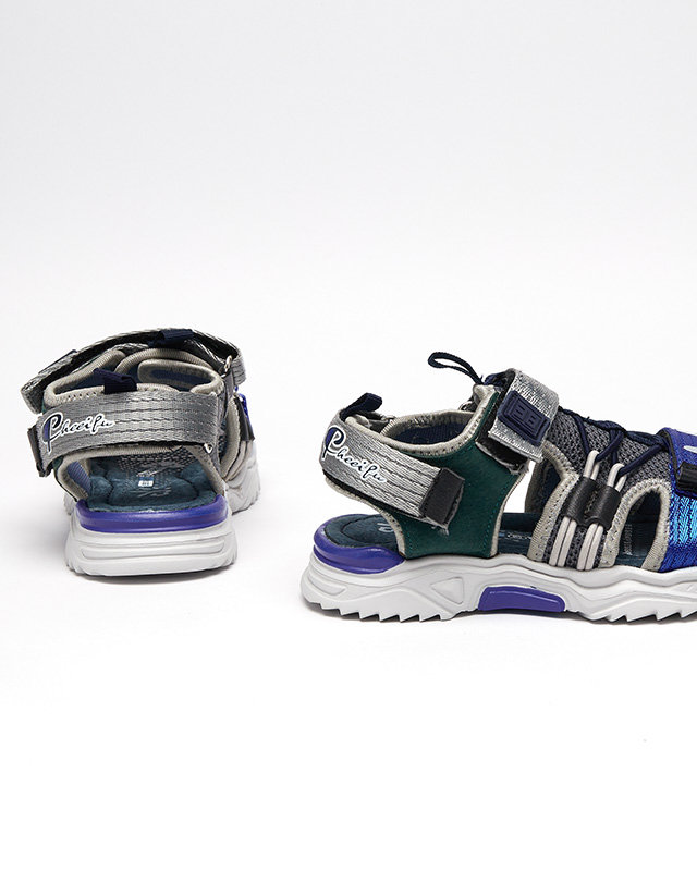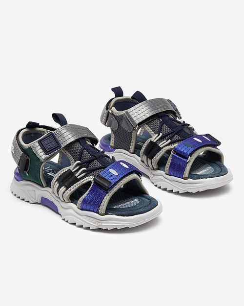 Navy blue and gray children's sandals with Velcro Meteris - Footwear
