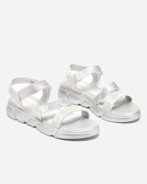 Shiny silver girls' sandals Seloni- Footwear