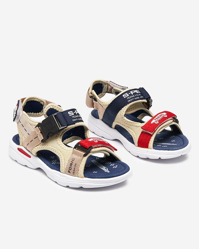 Beige and navy blue boys' sandals with Velcro Elbrusia - Footwear