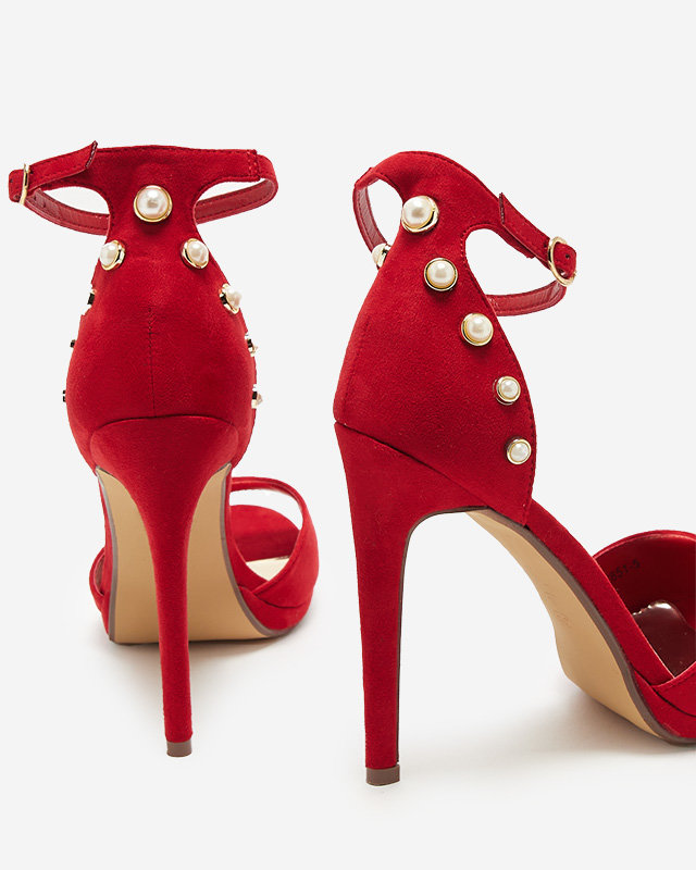Women's red sandals on a high heel eco suede Sariel - Footwear