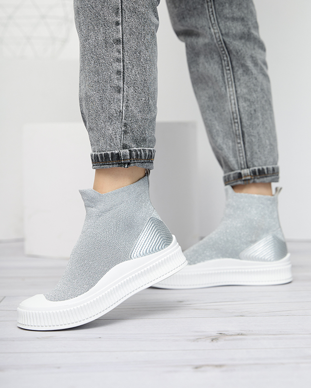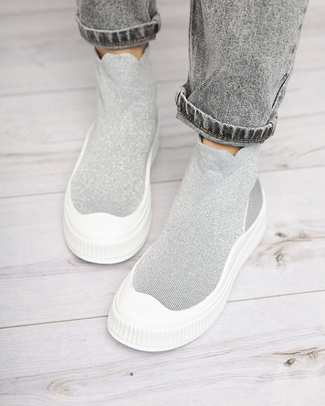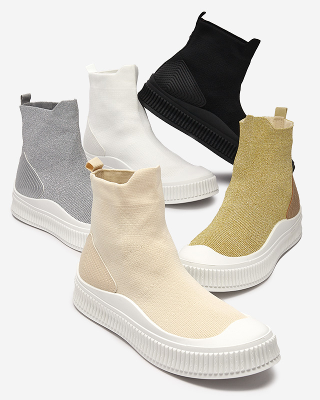 - High-top, slip-on casual-style sneakers - on a flat sole. The pair is made entirely of fabric material and has eco-leather inserts on the sides. Perfect footwear for active days.