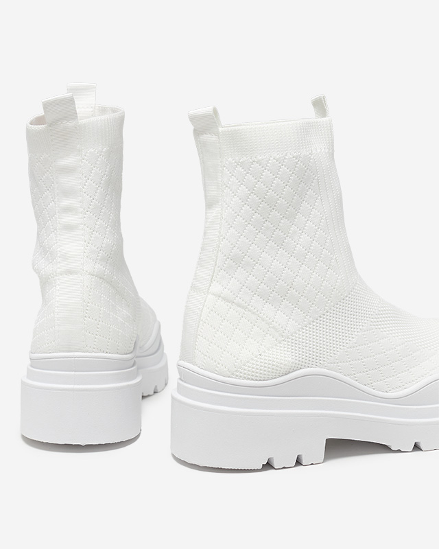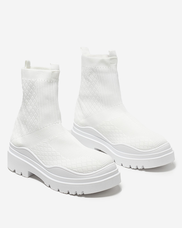 • Stylish women's slip-on boots made of fabric material. Model on a solid sole, has an interior lined with fabric. A perfect base for many everyday looks! WHITE BOOTS WOMEN'S BOOTS UNINSULATED SERITIS