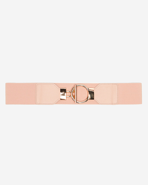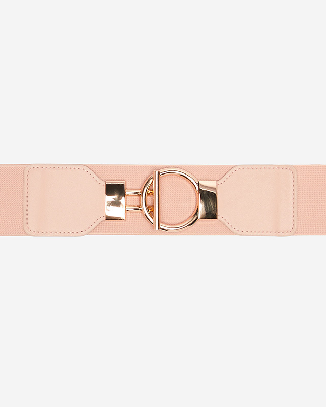 - Perfect ladies belt with large golden metal buckle for the clasp. The product is made of a combination of ecological leather and rubber. A great addition to your casual outfits!