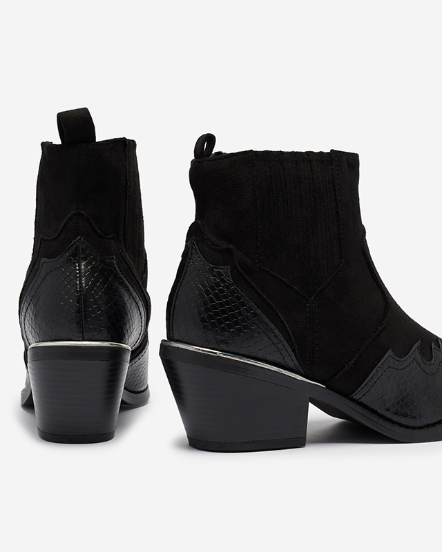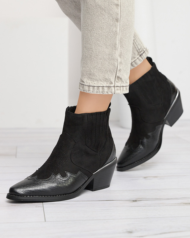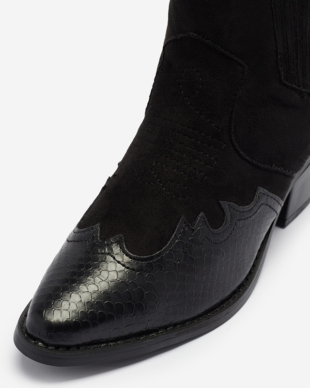 - Sensational cowboy boots on a low post in a unique edition. The upper is made of a combination of eco leather and eco suede leather. Inside they have a delicate warming in the form of fur. BLACK BOOTS WOMEN'S COWBOY BOOTS ZIRRAS