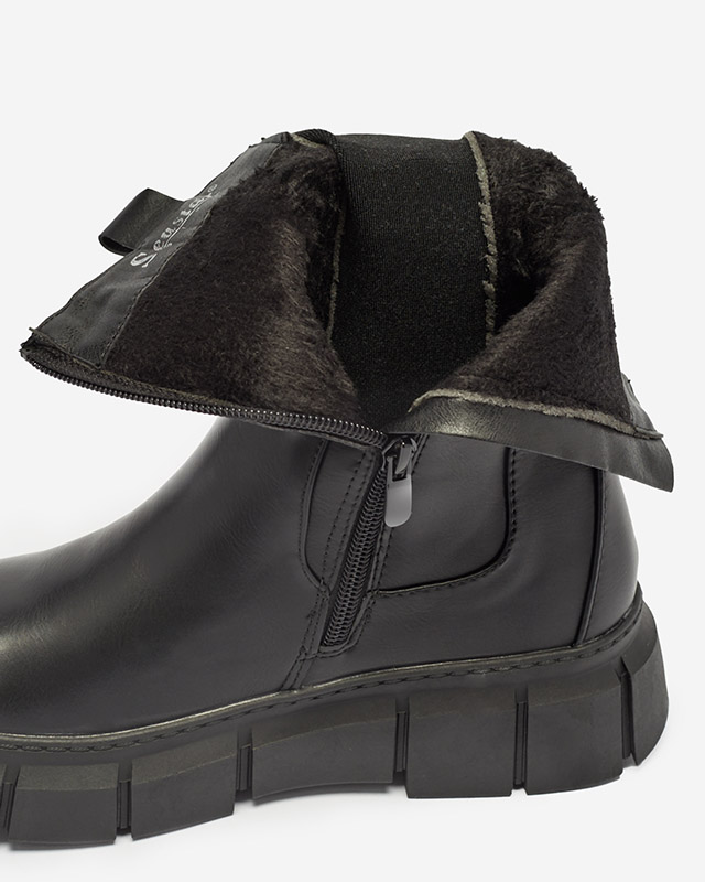 - Stylish women's boots made of ecological leather. The boots are zippered, have an elastic insert on the side, a rubber platform, and soft warming inside. BLACK BOOTS WOMEN'S BOOTS COUELL