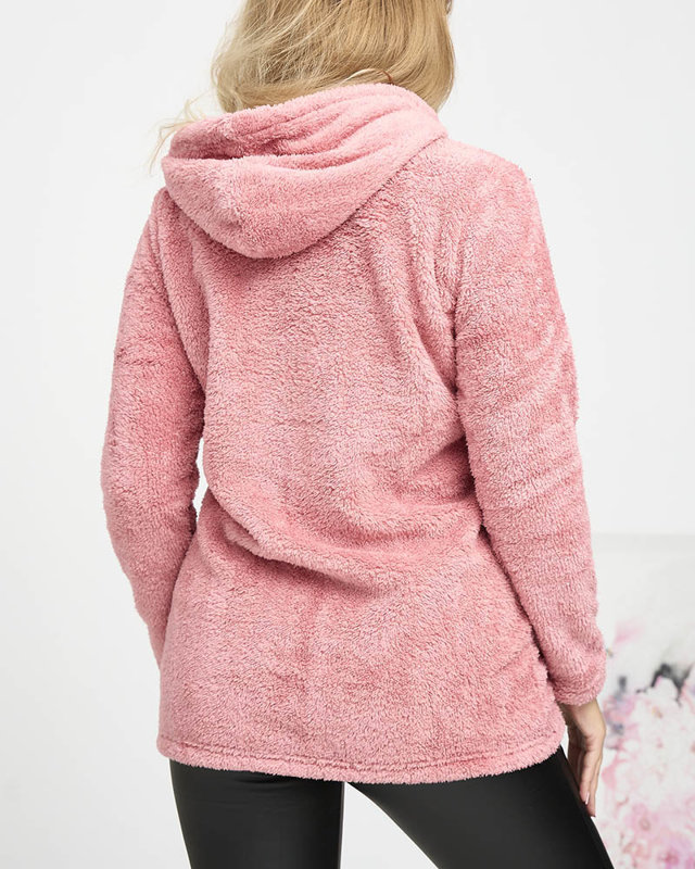 Women's Pink Plush Hoodie - Clothing