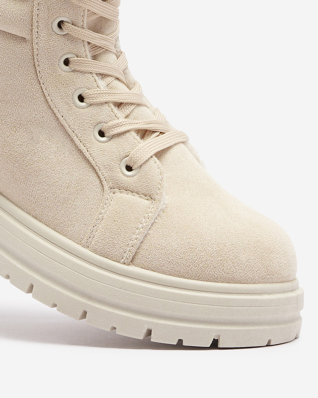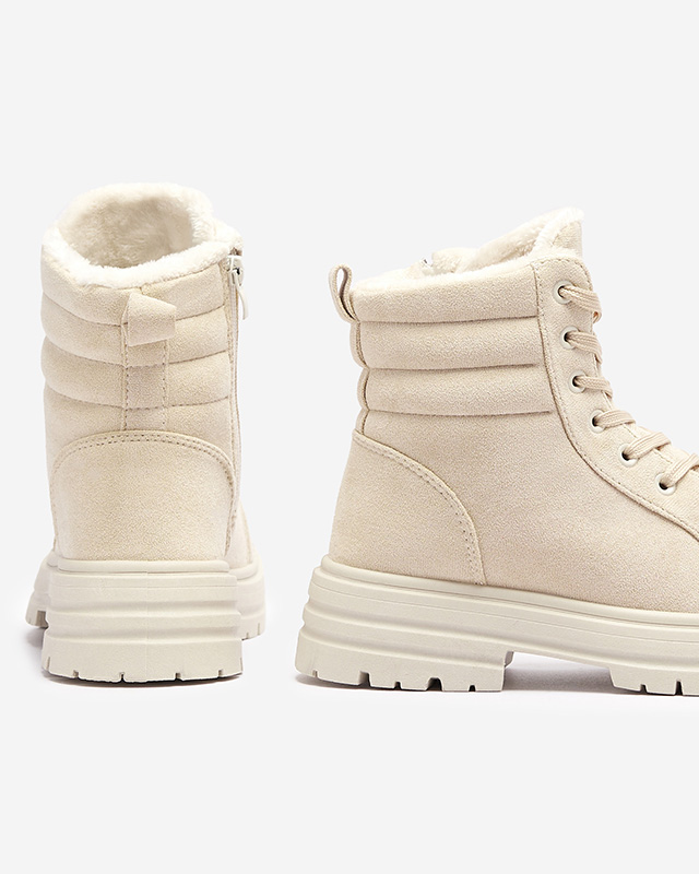 - Women's trapper boots, made of eco-suede leather. The upper is laced and has a zipper closure on the side. The inside is insulated with soft fur. Must have of this season! CAMEL INSULATED BOOTS TRAPPERS TIVICA