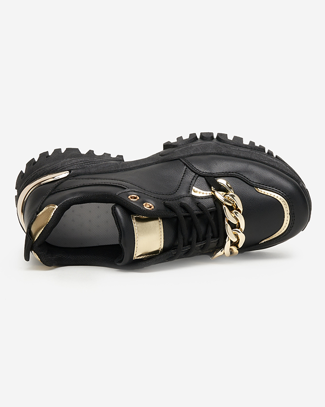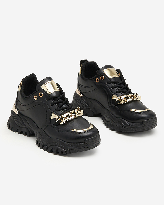 OUTLET Black women's sports shoes with gold chain Evitos - Footwear