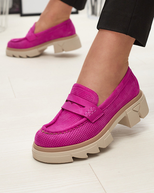 Fuchsia women's openwork moccasins on a solid sole Ejina - Footwear