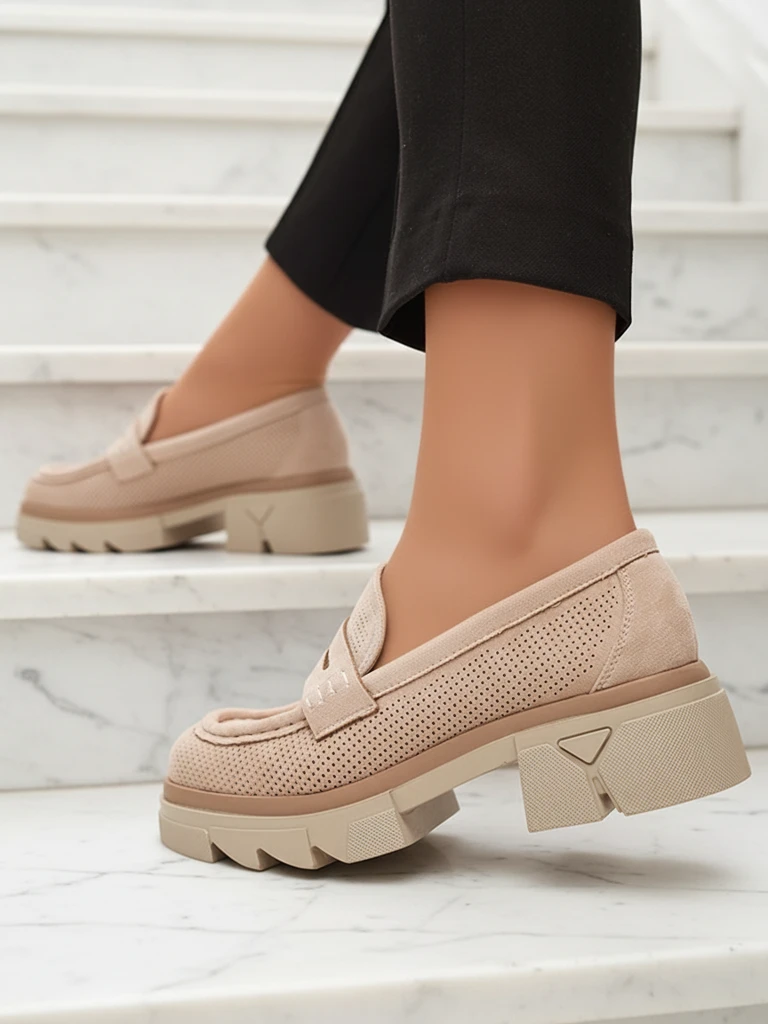 - Stylish women's moccasins on a solid sole. The product is made of organic suede leather, the insole is natural leather. The upper is decorated with openwork finish. Super addition to your casual outfits!