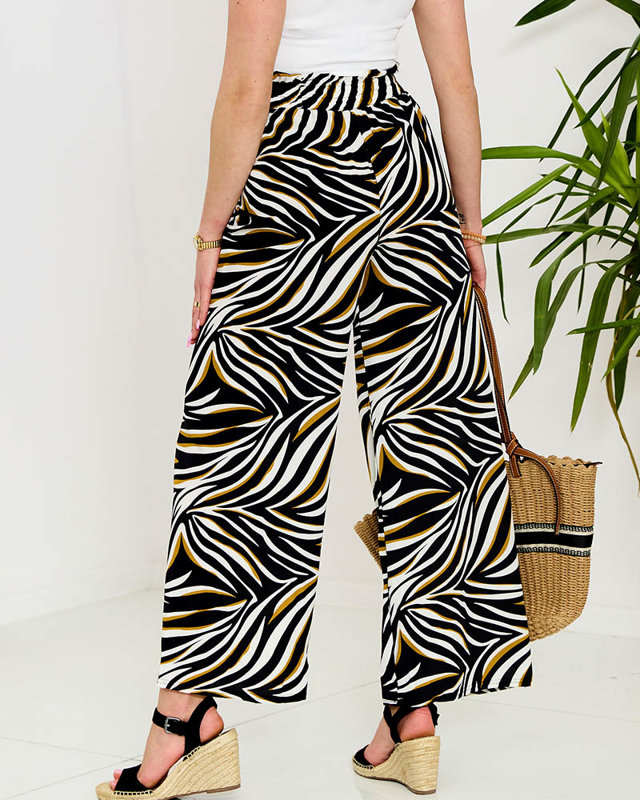 - Patterned wide women's pants. The model is made of light and airy fabric, has an elastic band and binding to emphasize the waist. The perfect base for stylish outfits for spring! NOTE: Measurement accuracy (+/-) 1 cm.