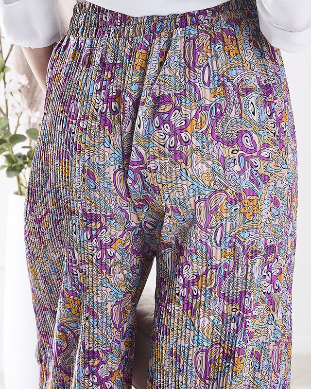 Patterned wide-leg pants for women in purple- Clothing