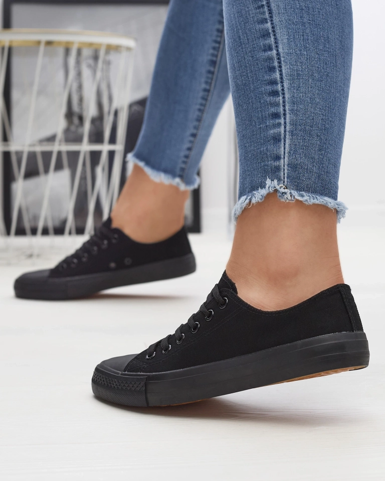 - Classic, timeless women's lace-up sneakers on a flat sole. The upper as well as the insole are made of fabric material. Super addition to your casual outfits!