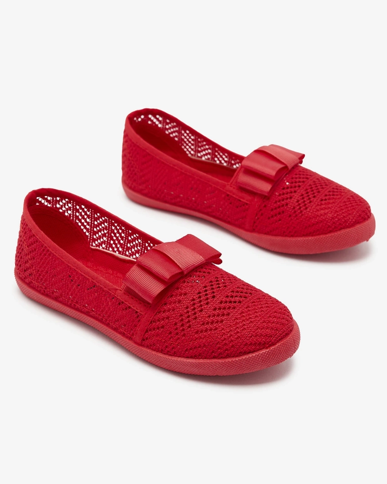 - Beautiful girls' slip on sneakers. The upper is made of openwork fabric material, the insole is also fabric. The pair is decorated with an adorable bow on the front. In addition, the shoes have a rubber insert for easy sliding of the foot into the shoe.