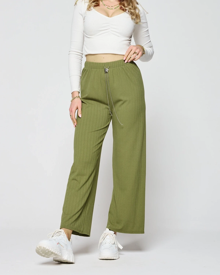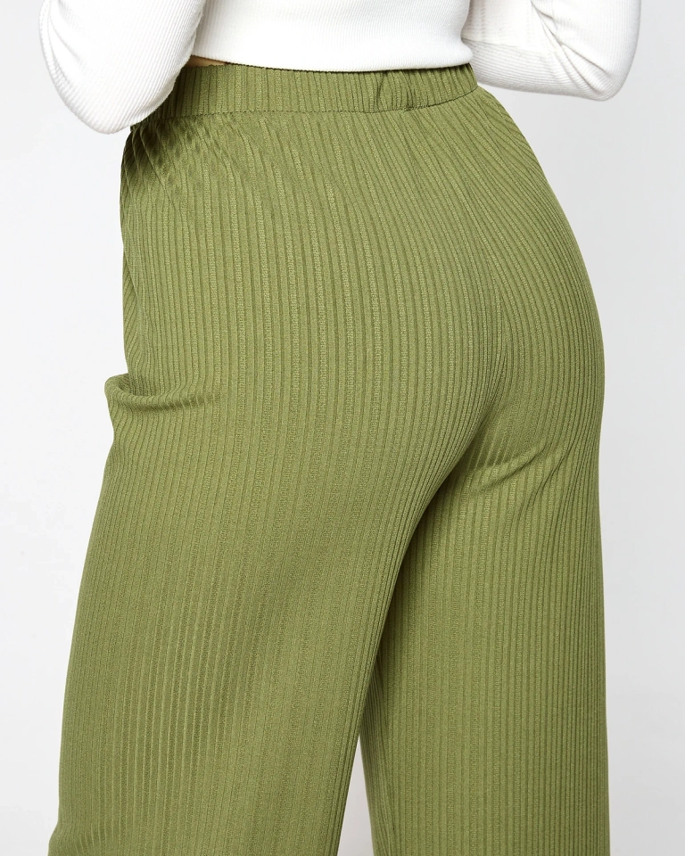 Green women's wide ribbed pants - Clothing