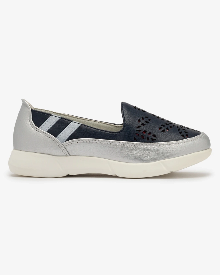 Girls' silver and navy blue slip on sneakers Ewesgi- Footwear