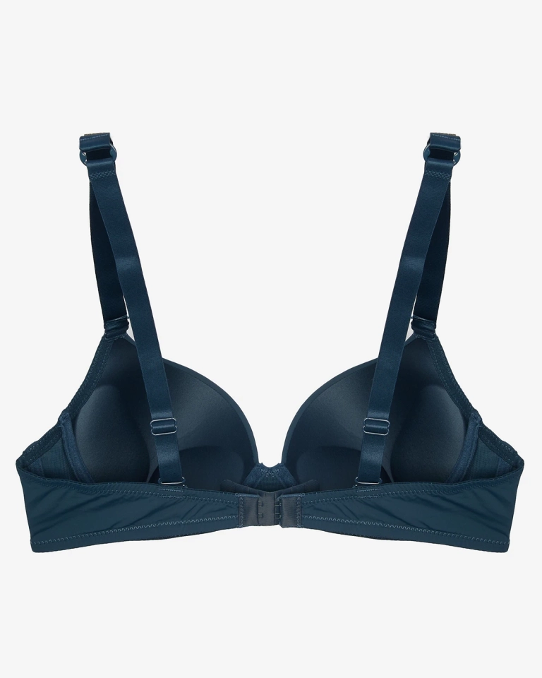 Royalfashion Navy blue plain push-up bra with decorated straps
