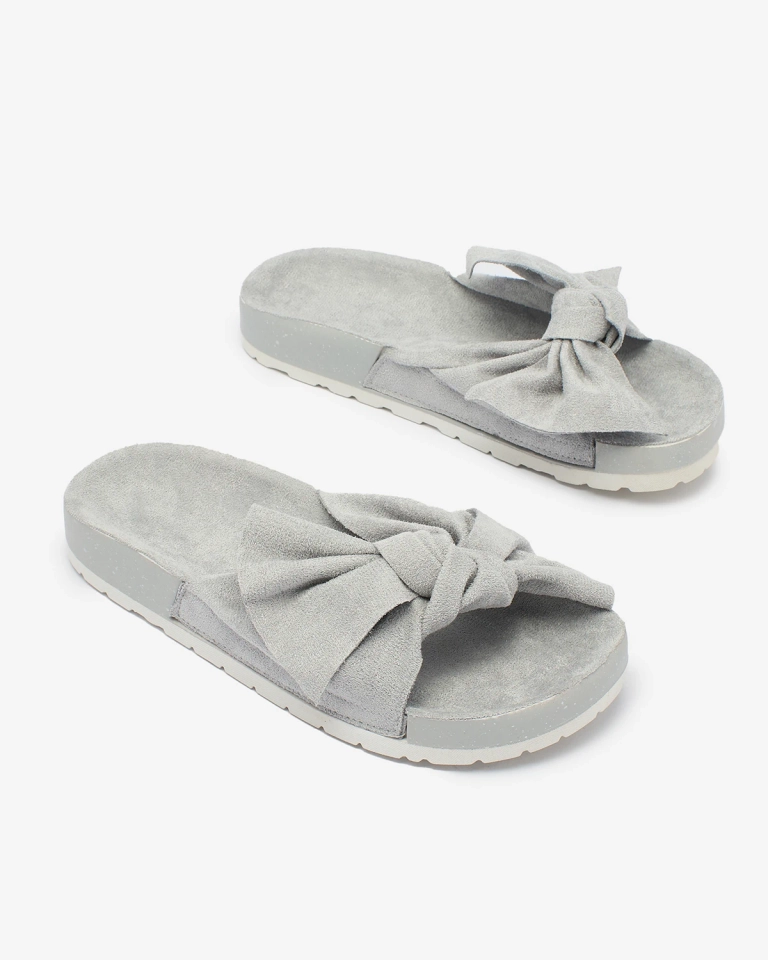 Royalfashion Women's eco-suede flip-flops with bow in gray Suui