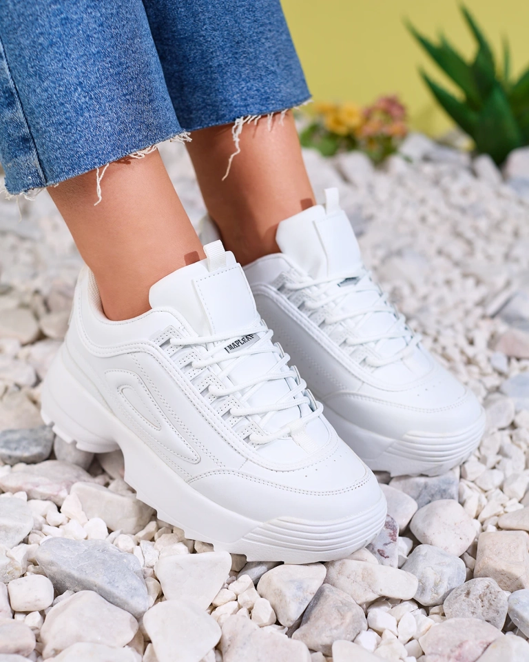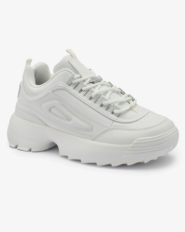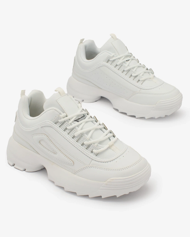 • Discover the perfect combination of style and comfort with these fashionable platform sports shoes. Their lace-up upper is made of eco-leather, the interior of the shoe is lined with fabric. The elevated platform sole adds a trendy touch and stability.
