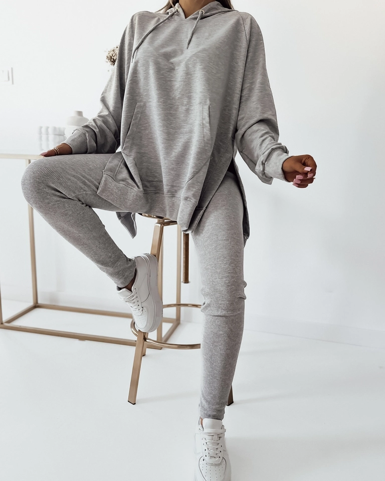 - Comfortable women's sweatshirt set - consists of a kangaroo sweatshirt with long sleeves, hood and side slits and leggings made of ribbed material. A must have for everyday wear! NOTE: Measurement accuracy (+/-) 1 cm.