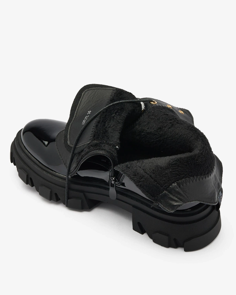 Royalfashion Black lacquered women's insulated Setogia bagger boots
