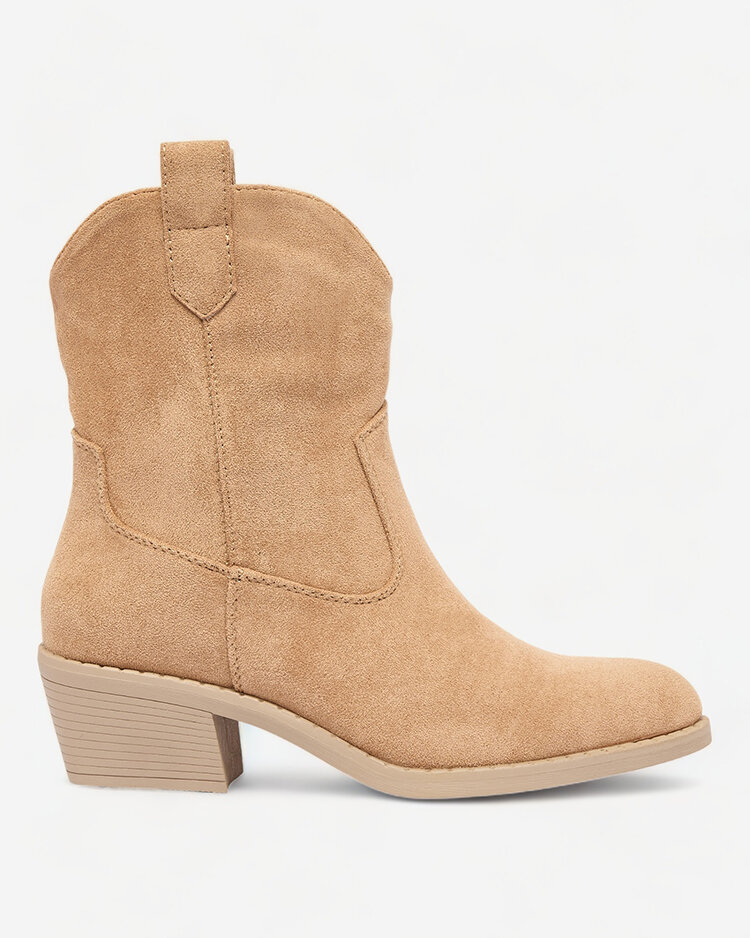 - Classic women's slip-on cowboy boots on a low post with an almond toe. The material of the upper is eco-suede leather, the middle is insulated with soft fur. Perfect base for many everyday looks! WOMEN'S BRONCO HEATED COWBOY BOTS