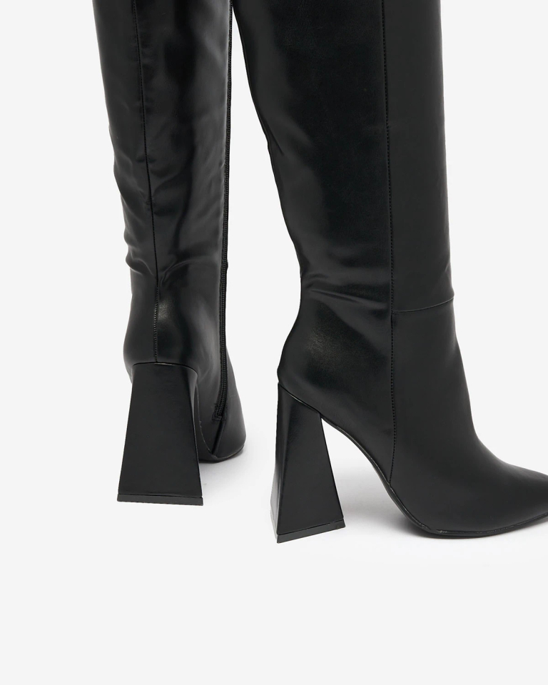 - Mega fashionable women's triple heeled boots, which adds a unique charm to them. The footwear is distinguished by a pointed toe nose, giving an elegant and stylish look. The interior of the boots is lined with soft fabric material. A must have of this sea