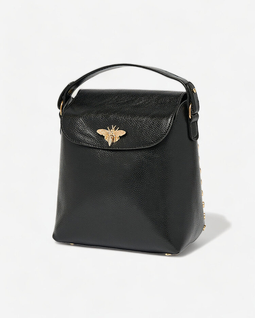 - Handbag made of eco-friendly leather. The handbag is fastened with a zipper and a bee-shaped clasp. The model has: 1 compartment, detachable adjustable strap.