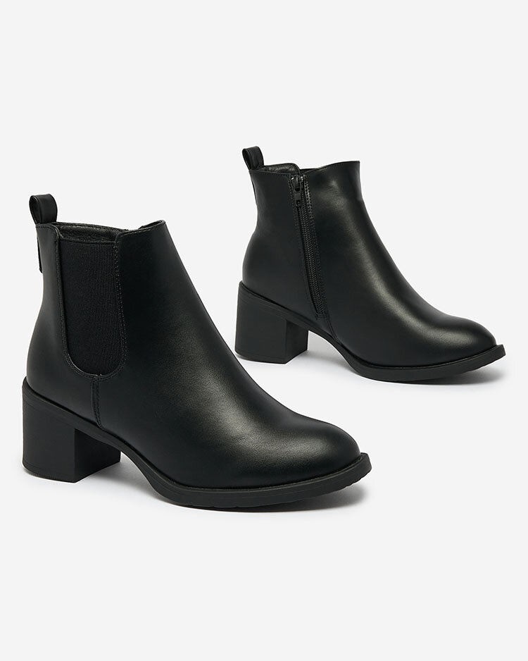 • Klasyczne botki damskie w kolorze czarnym, wkomponują się w każdą Twoją stylizację. Model na gumowym słupku, zapinany suwakiem, posiada wkładkę z eko-skóry oraz wnętrze pokryte sztucznym futerkiem.