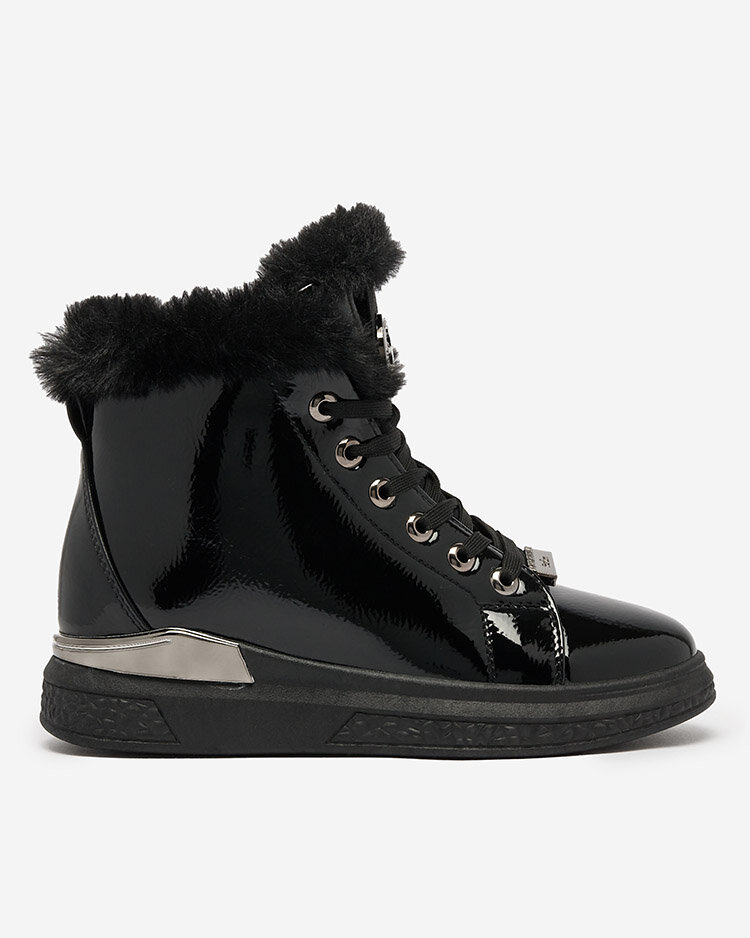 - Women's insulated sneaker sports shoes on a thicker sole. Lace-up upper made of lacquered ecological leather. Soft fur inside. Super addition to your winter casual outfits!
