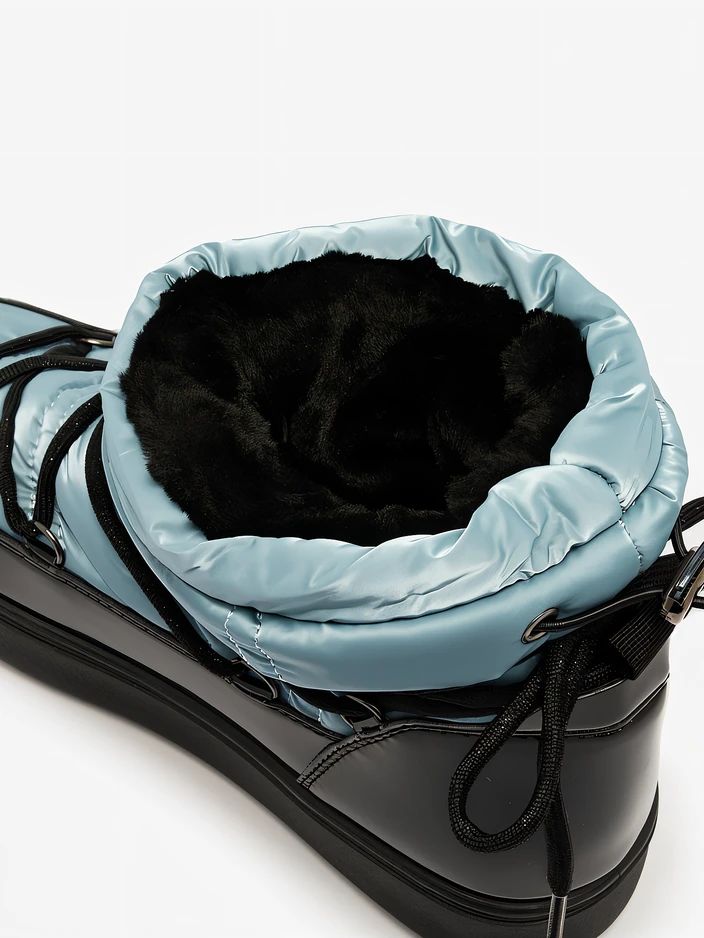 • Women's snow boots with an upper made of a combination of eco patent leather and a'la oilcloth material. Insulated inside in the form of fur, slip-on shoes. The model has a welt at the end of the upper. Ideal for winter!