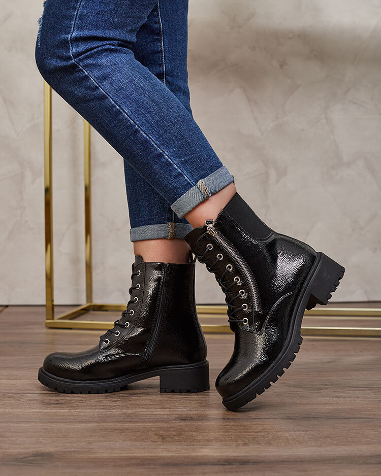 Royalfashion Black eco leather patent leather women's bagger boots Gaddaxa