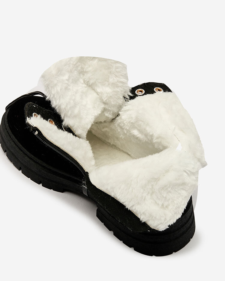 - Timeless women's boots a'la trappers. Lace-up upper is made of matte ecological leather, the middle is insulated with soft fur. Super addition to your casual outfits!